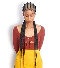 - Seamless Beauty: Experience the beauty of traditional braiding with a modern twist. Our 28″ Small Fulani French Curls Cornrow Braided Wig offers a flawless blend of style, volume, and comfort. It is handcrafted with premium synthetic fibers and finished with soft human hair baby hairs, delivering a look that’s both luxurious and natural.