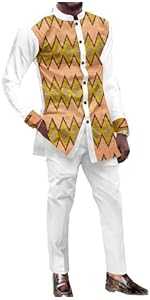 Men?s Dashiki Long Shirt & Women?s Ankara Printed Top/Trousers Set ? Vibrant