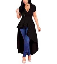 - This Lrady Women’s Shirt Dress features a high-low, irregular ruffle hem, creating an asymmetrical peplum tunic design.