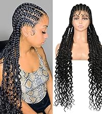 Youthfee 36″ Black HD Lace Front Box Braided Wig with Baby Hair