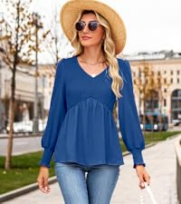 Acelitt Women’s V Neck Smocked Peplum Top – Elegant Puff Sleeve Blouse