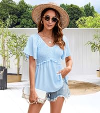 CiCiBird Women Dressy Casual Blouses Summer Peplum Tops Work Pleated Blouse