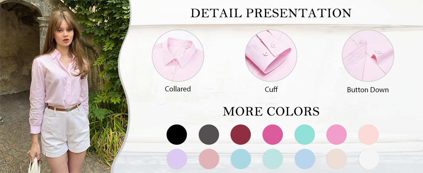 - Fashion Style: Long sleeve, button front, solid color with a turn-down collar that is wrinkle-free.